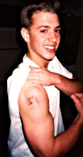 Unintelligible as it may be, Seth shows off his Blatvian tatoo. (On sale now for $12.95.)