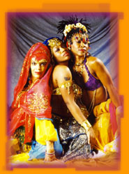 The founder and artistic director of NYANSA, Camila Karam (far left), is committed to exploring old and new forms of movement that honors all life as expressions of nature. In this spirit Camila aims to create, entertain, and inform. Camila Karam received her BA in Wholistic Medicine and Ethnic Dance from New College of California in San Francisco. She is accompanied by Taisha Parrott (center), a Howard University graduate and gifted ceramist and Cheryl Fields (far right), a graduate of Bryn Mawr College and the University of S. California. Cheryl is also the Managing Editor of "Black Issues in Higher Education" magazine. NYANSA is a Washington, DC based group and is available to perform for any event requiring entertainment! E-mail us at nyansa@oocities.com