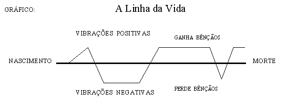 No gráfico abaixo, a Linha da Vida, desenvolve-se desde o nascimento até a morte. Podemos representar como sendo acima dessa linha, os atos positivos e abaixo dessa linha, os atos negativos. Quando as suas vibrações são positivas você se torna merecedor de ganhar bênçãos, quando as vibrações são negativas você perde as bênçãos.
