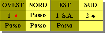 Esaminiamo ora la mano del diagramma a lato, il cui contratto finale è 3 S.A. al quale si è giunti dopo la seguente licita: