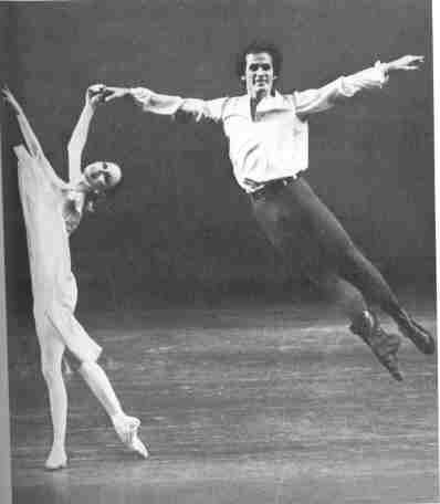 Patricia McBride和Helgi Tomasson在Jerome Robins的Dances at a gathering中. Robbins的這個作品,並沒有故事,只是一班舞者自得其樂地在Chopin的音樂中跳舞, 而觀眾也能輕輕鬆鬆地欣賞這個作品.