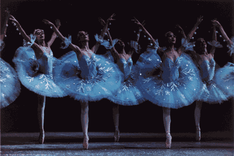 Kirov Ballet的corp de ballet在胡桃夾子第一幕中飾演雪花