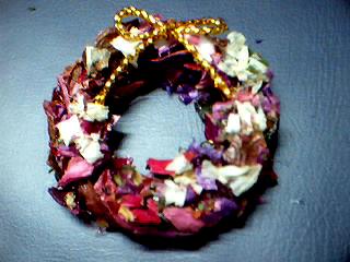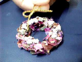 around the side of the rim and cover the rest of the wreath with the potpourri.