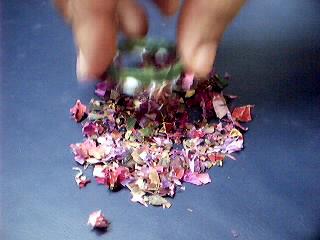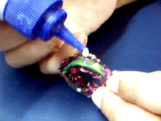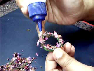 adjust the glued potpourri pieces while it is still wet to make sure it sticks
