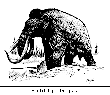Description: Adults mammoths stood between about 3 and 3.7 meters (10-12 feet) at the shoulder and weighed between 5500 and 7300 kilograms (6-8 tons). Their teeth were comprised of numerous enamel plates. As they were used, these plates were ground into a washboard-like surface. This surface was very effective for grinding up difficult to eat plants like grass.