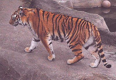 doubled. Unlike the Siberian tiger, it has striped forelegs.