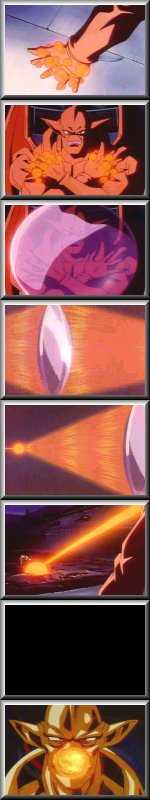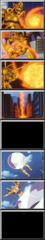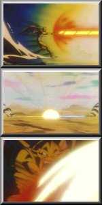 First version, he powers up his hands and creates a lens. Then, he focuses light through it to fire a laser. Second version, he creates a fireball with his mouth, then takes it to his side, and finally throws it, engulfing someone in flames. The third version has him create a lens, then throws that to attack.