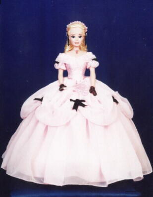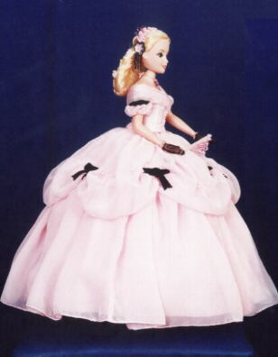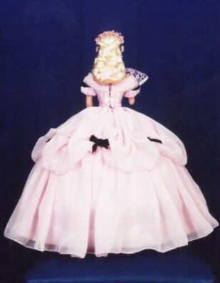 heavenly beautiful in her pink satin-and-chiffon ballgown.