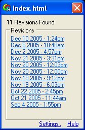 The plug-in was able to retrieve several revisions cached in Gds. To view any of them just click on the revision's date.  |