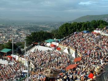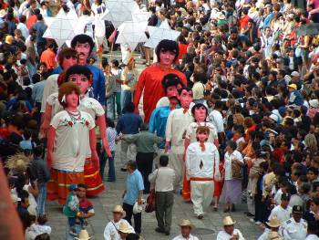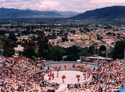 Guelaguetza is an internationally recognized dance festival when when the people from Oaxaca's seven regions come to Oaxaca to compete in the huge open air theatre which overlooks the city. It is held the last two Mondays in July and those two weeks resemble Mardi Gras with streets full of brightly dressed dancers, tourists and booths selling native handicrafts and food. Every night there are free dance and music concerts held throughout the city. You should be here!!!