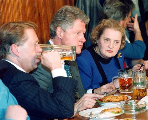 Velmi dobré vztahy se Spojenými státy umocňují i přátelské vazby českého prezidenta Václava Havla s prezidentem USA Billem Clintonem a americkou ministryní zahraničí Madeleine Albrigtovou, která pochází z Československa a dodnes mluví výborně česky. Excellent relations with the United States were enhanced by the friendly relations between President Vaclav Havel, US President Bill Clinton and American Secretary of State Madeleine Albright, who is Czech by birth and still speaks the language very well.