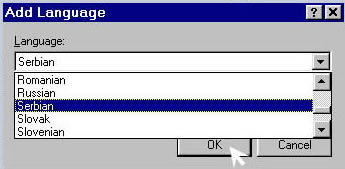 | Na ovaj nacin instalirali ste tzv.Multilanguage Support i u desnom uglu Start linije (pored sata) pojavice se plavi kvadrat. Pritiskom na njega menjate pismo koje koristite u aplikacijama, a mozete i da citate stranice na internetu koje su pisane Cirilicom ili Yu Latinicom, kao i da koristite aplikacije poput Worda bez koriscenja posebnih fontova. | ||||||||||||||||||||||||||||||