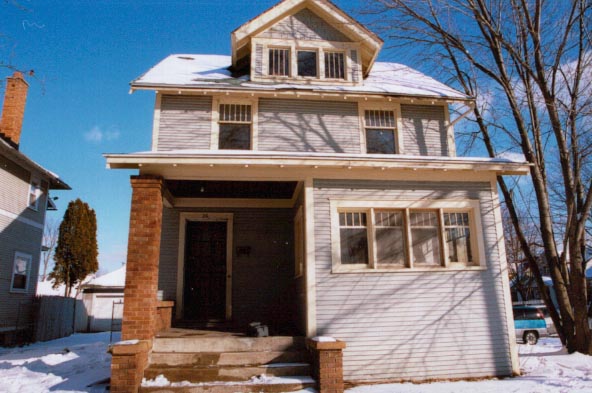 | This is our 80 some year old house. We have a vast front yard (a park/zoo) and close neighbors on our corner lot in the city. |