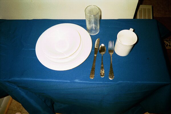 20 piece White Dinnerware set(complete w/silverware and glasses) click to see picture |