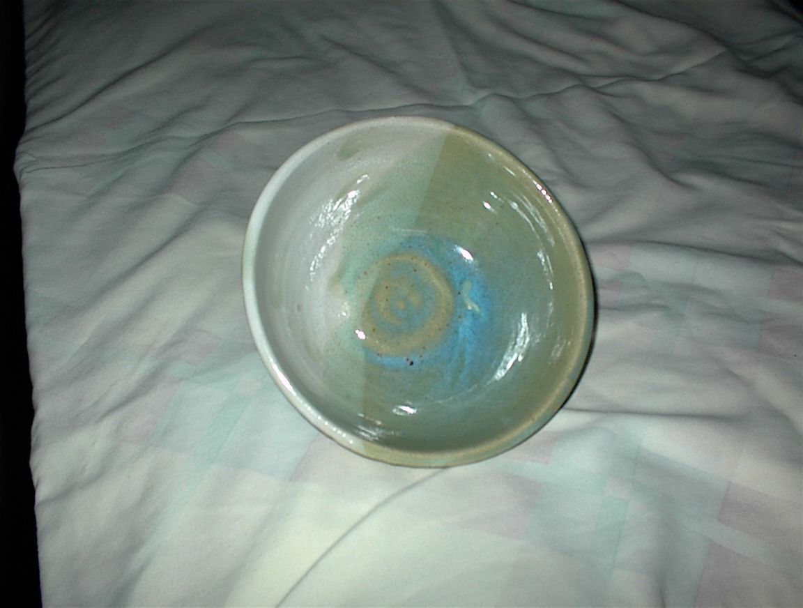 Ceramic bowl made 2003. Green, Beige and Aqua