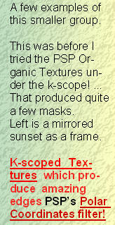 Polar Coordinates filter applied to an Aralia Texture that was run through the Kaleidoscope: fill the canvas with texture, and K-scope, then apply the the Polar Coordinates filter and you can achieve great borders! |