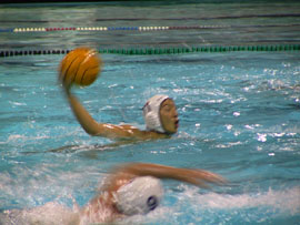 the last two days of polo have been awesome. last night, our coach didnt have the keys to turn on the lights, so it was like hayla dark around 7. so we played sharks and minnows!! the minnows had to swim underwater (9 feet deep) and the sharks had to swim down and yank them up. i was THE shark. muahahaha. that was so fun. it's kinda scary cuz u can't see the people until they are like 6 inches from ur face. and today, we played SILENT polo! not a word was spoken during our scrimmage! that was awesome. the loud ass motherfucking girls finally shut the fuck up lol. but it really helped the dumb ppl get some game sense by actually LOOKING around to see what is going on in the game. our coach is so cool.