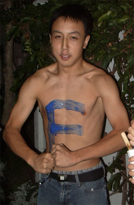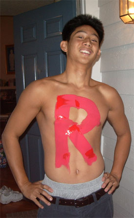 the highlight of my weekend was the homecoming game. patrick me ryan kevin and alex painted our bodies "E" "R" "I" "C" "K" respectively and flashed our sexy bodies for erik and eric. lol we had to do ryan at the game.