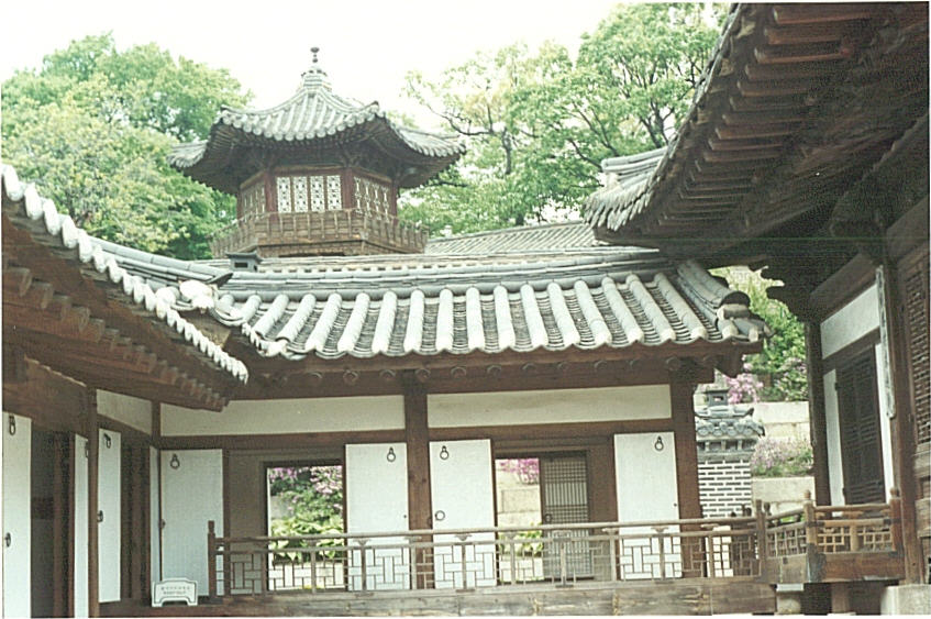| Naksonjae (Mansion of Joy and Goodness) consists of three court gardens. This is an annex mansion is adjacent to the Ch'angdok-Gung complex. To arrive at Naksonjae from Ch'angdok-gung, one just has to go through one of the numerous gates into the Naksonjae mansion courtyards and surrounding gardens. Naksonjae was where Yi Pang-ja (Princess Masako) lived prior to her death in 1989. In essence Princess Yi Pang-Ja, was the last link between contemporary Korea and the past 500 years of the Choson dynasty tradition. Interestingly in 1927, the Japanese occupants who occupied Ch'angdok-gung as an administrative headquarters, built an addition on to Naksonjae. This is where the Japanese Crown Prince and Princess Pang-Ja lived. However in 1995, the addition was pulled down and Naksonjae was restored to its mid 19th century glory. |