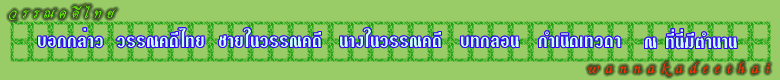 Copyright (2003) by http://www.oocities.org/wannakadeethai or http://www.pasathai.tk Contact Me : webpasathai@hotmail.com |