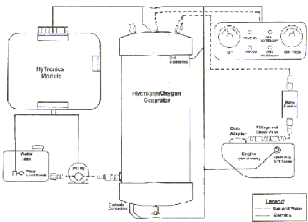 In a nutshell, the Hydro-Gen separates hydrogen gas from the natural hydrogen-oxygen mix in standard tap water (i.e. H˛O). It then adds the resulting extracted hydrogen to the conventional air mix in a vehicle engine (e.g. gasoline, diesel, etc.) thus supplementing the expensive fuel with an additional low-cost (i.e. free) supplement -- the hydrogen extracted from the free tap water, of course!