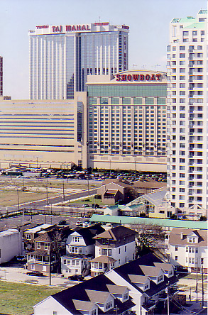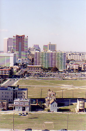 original had been under restoration when destroyed by fire in 1998. The two bottom photos show the contrasts of the Atlantic City of today, the casinos
