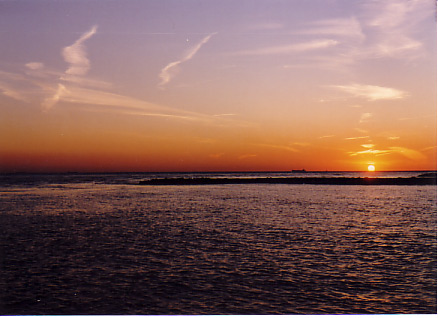 driven aground and broke up. The bottom photo, also taken in 1988, shows sunset over Delaware Bay. I walked out onto a jetty to take the picture and had