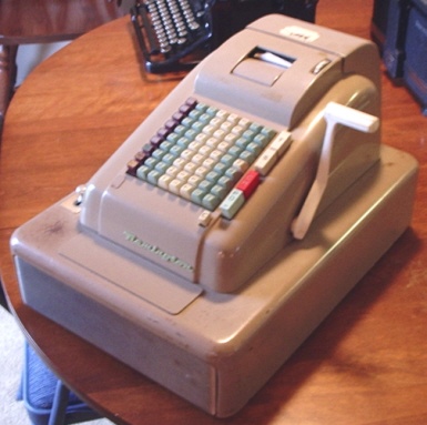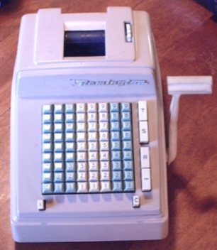 | REMINGTON FULL KEYBOARD ADDING MACHINE This 1960's machine is a rather late example of an adding machine with full keyboard. As with the other machines seen on this page, it's not electric, but crank operated. Produced after the Sperry Corporation buyout of Remington-Rand, which produced the Sperry-Rand Corporation. Sharp-eyed collectors might have noted the similarity between this machine and late CLARY adding machines. Sperry-Rand bought out Clary Corporation at the end of August, 1960, and machines like this one and the one below are based on the Clary and not on any previous Remington-Rand machines. |