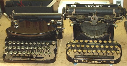 | Our only consideration in displaying standard typewriters in a series otherwise devoted to portables is the fact that both firms, separately and at different times did in fact make serious effort to enter the competitive market for standard typewriters but did so separate from the portables just shown. In the case of the US firm the standard machine preceded the Blick 90; in the case of the British firm the standard followed the end of all other production or distribution. |
