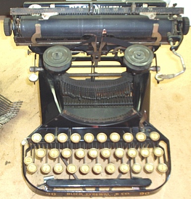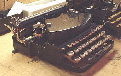 | As detailed earlier, the Blick 90 was introduced in 1919 by the Blick Typewriter Co. and was manufactured in the same Stamford, Connecticut plant that had previously built the well known Blickensderfer type-wheel portables. We were lucky to acquire this example, serial number K 1093 recently and took it into the shop for a complete inspection and analysis. |