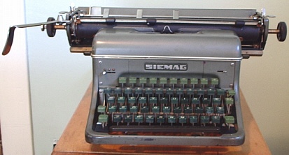 | SIEMAG entered into the production of typewriters rather late in history; the firm, which years prior had been known as Siegener Maschinenbau and which had adopted the contracted name "Siemag" produced its first typewriter, an office standard, as late as 1949. The "seller's market" in Europe was in full swing at this point, and the combined resources of those manufacturers from pre-war which had been able to restart production was still not sufficient to meet demand. The company continued with various office models, and even a portable, for over a decade until, in the early 1960's it sold its production to Messa of Portugal. |
