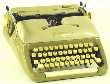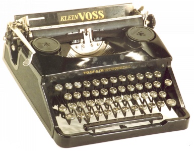 | Klein Voss Tilman Elster collection Machine serial number F543 displays the next labeling variant, wherein the machine is called the "Klein Voss" and also which displays the company name "Voss & Co. Wuppertal" on the front, above the keyboard. Also from 1949. Thomas Fuertig relates to us the fact that in some sources, early Voss machines are given official model numbers relating to year of production, so that the early machines would be Model 48 or Model 49. |