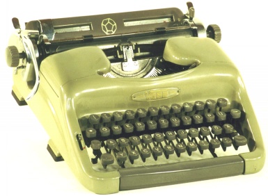 | Voss typewriters (which are all portables) have attained a following not only because of their relative rarity, but also because of the exotic look of many models. These machines were manufactured in Wuppertal beginning in 1948, and were produced in successive models until the early 1960's. You can click here to find our exhaustive history of this company and its machines; the link takes you off-site, so you must use your browser "back" button to return here. |