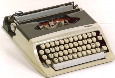 | Japy SM35 (1967) s/n 8,306,460. This machine has a decidedly Hermes look -- and no wonder, because it is. Note the Hermes-style paper arms folded down on the carriage, and the row of tall keys for functions running across the front of the machine. It seems as if co-operation of the two firms led to Paillard taking over Japy completely. For some time around this period, numerous machines were obtained from other sources and labeled as Japy, as the firm transitioned from manufacturer to simple importer/distributor. |