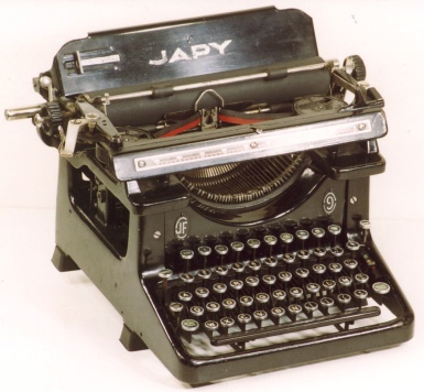 | At left, a Japy No. 3, with serial number 31392. Note that the machine retains much of the look of the Remington-Sholes machines. Manufactured 1924. |