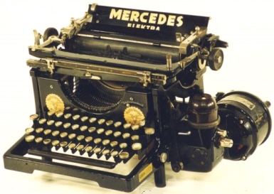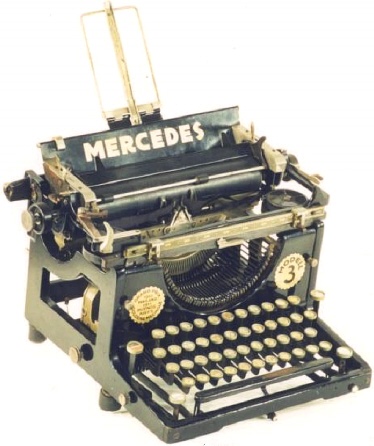 | Many people outside of Europe are unaware that for many years a good, dependable and rugged typewriter was manufactured under the name MERCEDES in Germany. This concern had nothing to do with the well-known auto maker; the builder of these typewriters was Mercedes Buromaschinenwerke which initially was based in Berlin, but which quickly required more space and moved to Zella-Mehlis. Unlike many other machines introduced in the first decade of the Twentieth Century, the MERCEDES was popular from the beginning and gained a following. The machine was produced steadily for a number of years, until, in 1930, Underwood-Elliottt-Fisher Corporation, of the United States, purchased control of Mercedes. This did not slow sales, and portables were brought out quickly to supplement the standards. The Second World War interrupted production, which then restarted following - with the Mercedes plant in what became East Germany. In 1951-1952, however, production of the MERCEDES was dropped, although rights to the name remained with Underwood. |