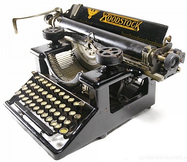 | Woodstock Electrite Tilman Elster collection Naturally, we cannot get away without showing the most famous of the Woodstock machines, namely the Electrite of 1925-1926. This was among the very earliest practical electric typewriters, in a developmental vanguard that included the Mercedes and the Remington / Electromatic machines. This example is serial number E 30403. |