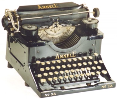 | Annell' No. 3A Tilman Elster collection This machine is said to be a version of the Woodstock No. 3, obviously enclosed, which was sold by mail-order. The author owns an original advertisement for this machine, which is dated 1922 -- many years after the No. 3 was dropped. These machines appear to run in their own serial number block; this example is serial number A1376. These were advertised as brand-new and not rebuilt machines. The distributing agent, namely the Anell' Typewriter Company, was located in Chicago, Illinois. A section of the ad is seen below. |