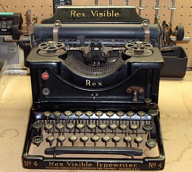 | We have restored and partly rebuilt a number of typewriters here. Here are before and after shots of a Rex Visible No. 4 we did last year. Machines are disassembled as far as necessary; broken parts replaced (often with new parts fabricated on site.) Adjustments are made, machines cleaned and reassembled for display or use. At no time were any relabeled, disguised or repainted. |