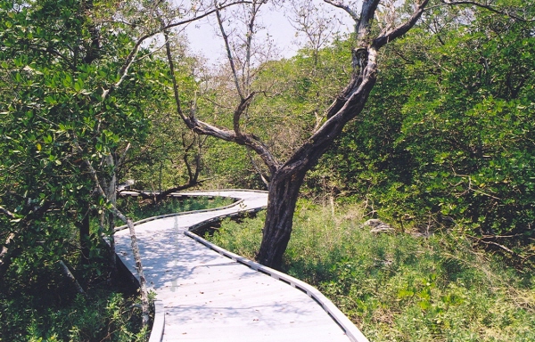 After crossing two bridges on the entry trail, you will find a boardwalk that winds through the mangrove swamp. At the end of the boardwalk, a pavilion overlooking the water provides a spectacular view of the Estero Bay Aquatic Preserve. Jumping fish, wading birds, even the shy manatee can be seen from the overlook.