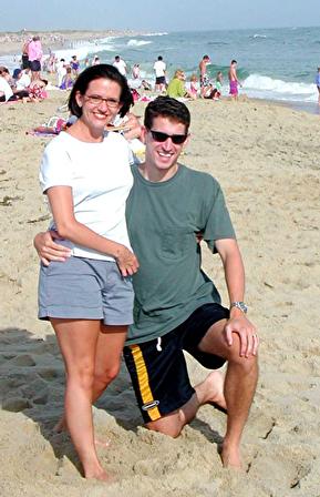 Janna and David on the beach in Martha's Vineyard. We took a bus to get to this beach, one of the few facing south towards the ocean, so it actually had waves. It was pretty crowded, but the water was cold, so most people just stayed on the beach. |