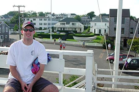 Here I am in Edgartown, on the island of Martha's Vineyard. I am up on a raised dock with the town behind me. It was a very quaint, but nice community, with many shops and restaurants. We ate dinner there that night, but we were staying in a place on the other end of the island. |