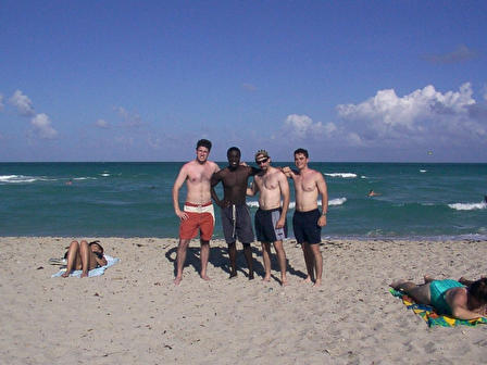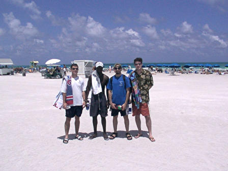 Steve, Doug, Corey and I soon after walking out onto South Beach for the afternoon. The beach is huge and packed with all types of people: white, black, hispanic, straight, gay, male, female, clothed and topless. The water was warm and welcoming, as we spent the whole day on the beach, swimming, throwing the frisbee, walking and just taking in the sights.