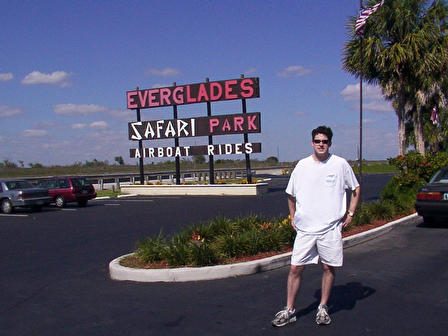 Me in front of the "Everglades Safari Park" sign. Corey, Steve and I decided to take a trip out to the Everglades, just outside Miami, to see some gators and go for an airboat ride. We went on Friday and got caught in rush hour traffic on the way back, but it was well worth the trip. |