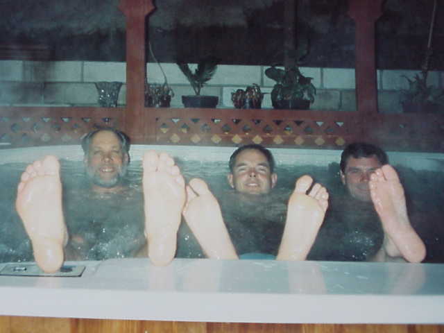Richard, Bill & Wally get a foot up in Richard's O'side hot tub.. |