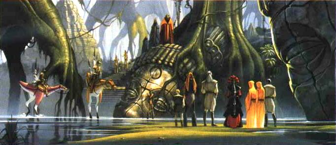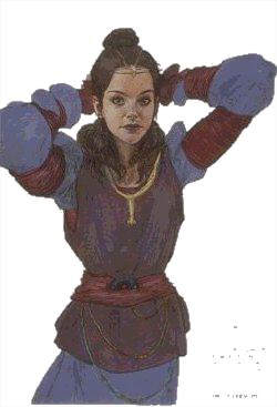 | This is a fan created picture from a original scene which at last they didn't do. This is the original dialogue: INT. NABOO SPACECRAFT - MAIN HOLD The QUEEN, CAPTAIN PANAKA, TROOPS, and HANDMAIDENS get ready to disembark as the ship lands. The elevator door slides open, and ANAKIN emerges into the hold area. He sees PADME and runs up to her. ANAKIN : Hi! Where have you been? PADME : Annie! What are you doing here? ANAKIN : I'm with Qui-Gon...but...they're not going to let me be a Jedi. I'm too old. PADME : This is going to be dangerous, Annie. ANAKIN : Is it? I can help... Where are we going? PADME : To war, I'm afraid. The Queen has had to make the most difficult decision of her life. She doesn't believe in fighting, Annie. We are a peaceful people... ANAKIN : I want to help...I'm glad you're back. ANAKIN smiles. PADME smiles back. |