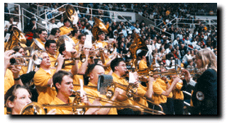 I spent six years in the athletic bands, as well. I played in regularly in the Volleyball Band, in Boiler Brass (Men's Basketball pep band) and in the Gold and Black Sound (GABS), the pep band for the 1999 National Champion Women's Basketball Team. If you look closely in this GABS picture, you will see me playing trumpet (only for one season - several :) years ago). I was a member of Volleyball Band and GABS for 6 years and Boiler Brass for 3 years.