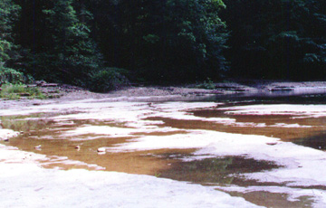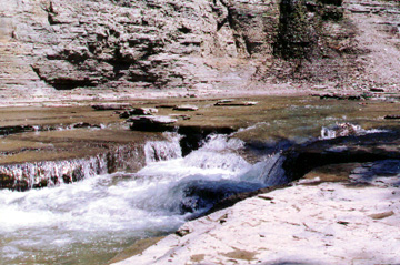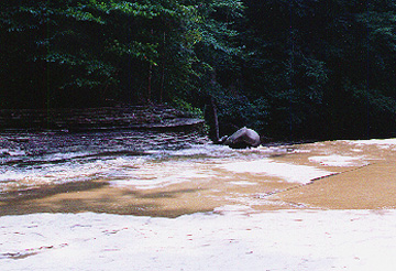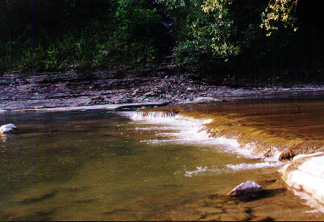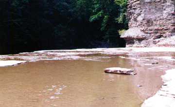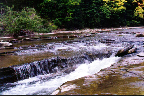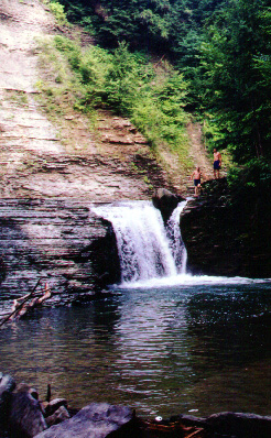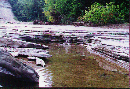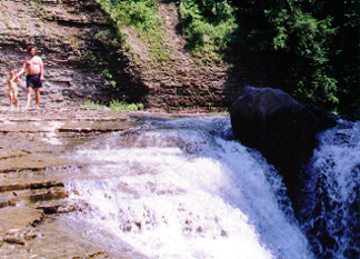 Here are 2 pictures of the pools directly below the falls. The first is looking downstream, the second, having past the pools, looking back upstream towards the falls. The second photo includes Charlie and Amy.