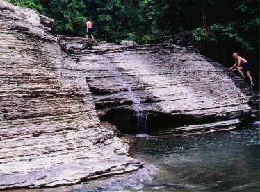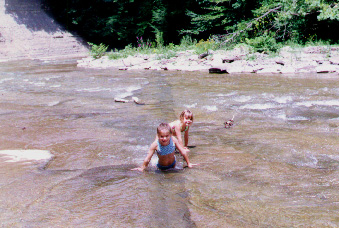 These pictures show the pool above the falls with Charlie and the girls taking a dip in it. (from both the upstream and the downstream side of it)