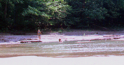 This and the following bunch of pictures are various shots on the walk to 'the falls'. I estimate it's about 3 miles upstream, but that's only a guess. It took us (w/ kids remember) about 3 hours to walk to the falls. I suspect that without kids I could do it in just over an hour.